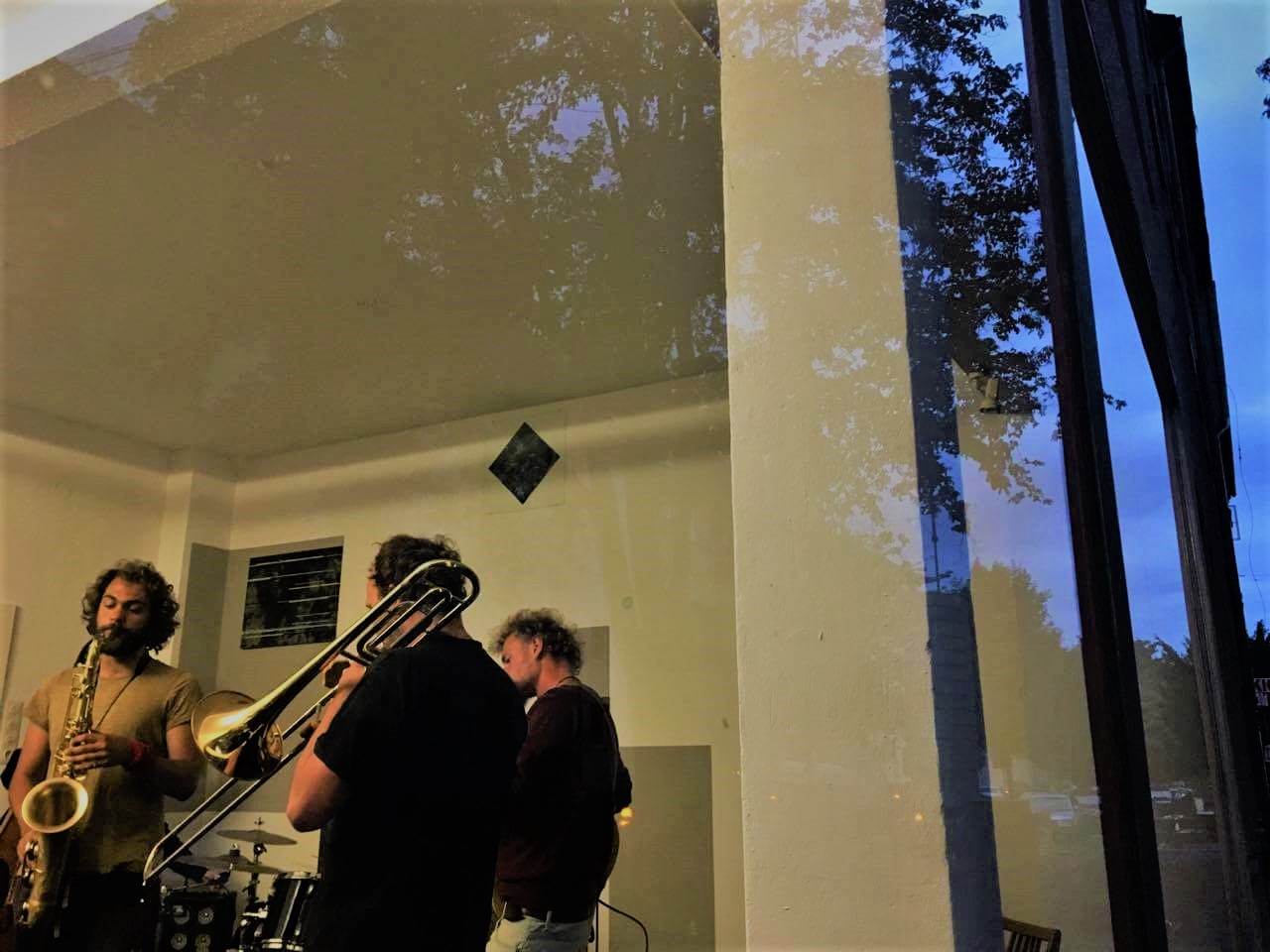 Die wunderbare Jazzband DidiKalaki kamen in den KUNSTRAUM53 und gab ihr musikalisches Können zum Besten. Die fünf Jungs aus Leipzig verzauberten mit ihrer wilden und einfühlsamen Musik, ein unvergessliches Erlebnis in Mitten der Ausstellung Stars fell on Albama // Sebastian Bartel, dessen Titel von einem Jazzsong entstammt!
